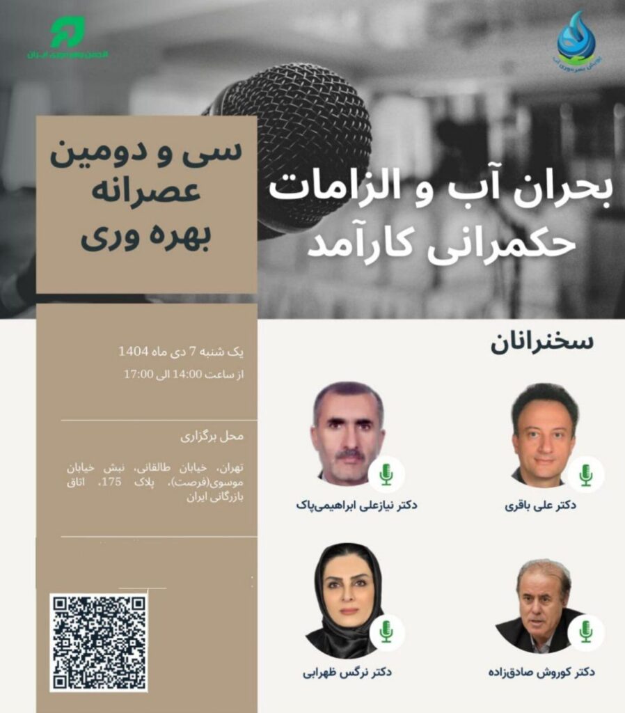 همچنین نیازعلی ابراهیمیپاک، رئیس بخش تحقیقات آبیاری مؤسسه تحقیقات خاک و آب کشور، بحران آب ایران را چالشی ساختاری دانست و تصریح کرد که راهحلهای مقطعی پاسخگو نیست و دستیابی به مدیریت پایدار منابع آب مستلزم حکمرانی شفاف، اصلاح قوانین و مشارکت مؤثر مردم و نهادهای مدنی است.